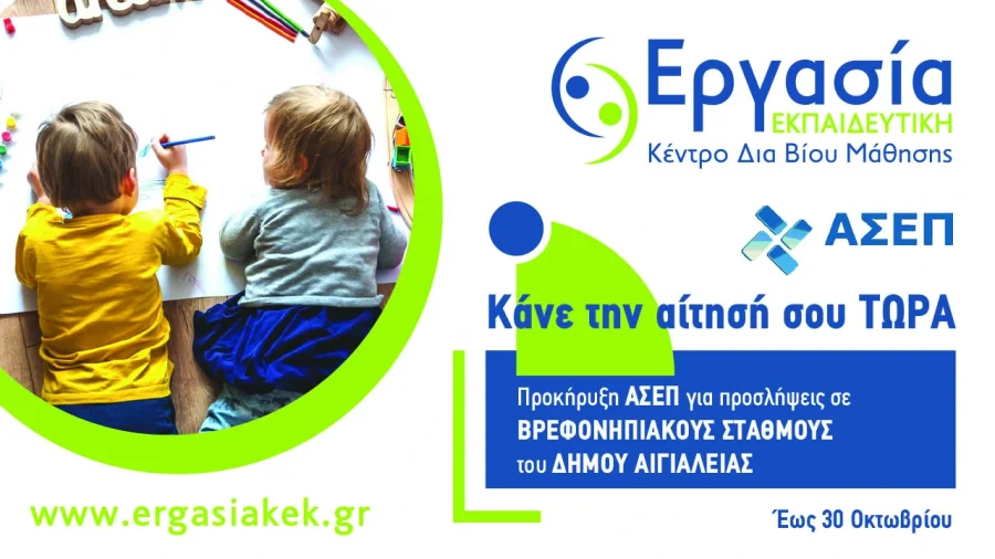 Τότε ο Δήμος Αιγιαλείας σας δίνει την ευκαιρία να εργαστείτε σε Bρεφονηπιακoύς Σταθμούς του Δήμου (ΣΟΧ 1/2023), οι οποίοι είναι ενταγμένοι στη δράση, «προώθηση και υποστήριξη παιδιών για την ένταξή τους στην προσχολική εκπαίδευση καθώς και για την πρόσβαση παιδιών σχολικής ηλικίας, εφήβων και ατόμων με αναπηρία, σε υπηρεσίες δημιουργικής απασχόλησης», την χρονική περίοδο 2023-2024.